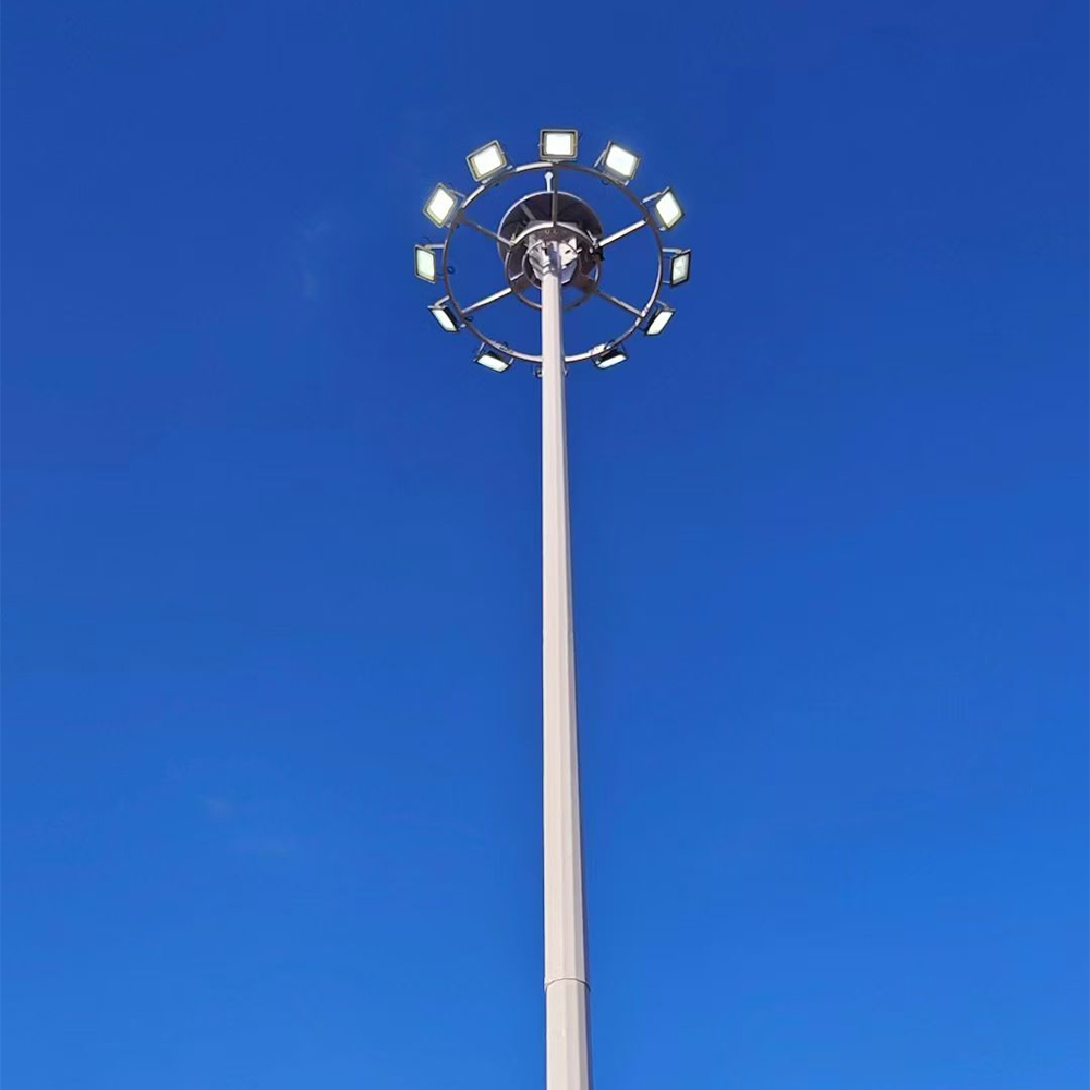 High Mast Street Light is mainly composed of solar panels, LED lamp heads, batteries, intelligent controllers, and steel lamp Hpoles. They absorb solar energy during the day to convert and store it as electrical energy, then automatically light up at night without relying on external power grids, making them energy-saving and environmentally friendly. They are particularly suitable for large-area lighting venues such as squares, highways, and parking lots.Using a modular design, the solar panels are relatively independent of the high pole lights.